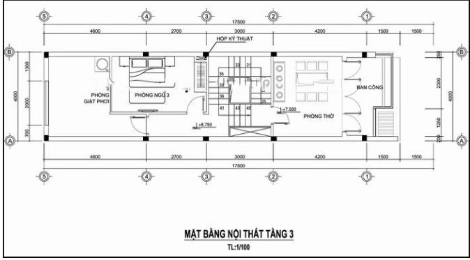 Mặt bằng tầng 3 của nhà ống 3 tầng lệch