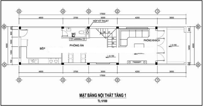 Mặt bằng tầng 1 của nhà ống 3 tầng lệch